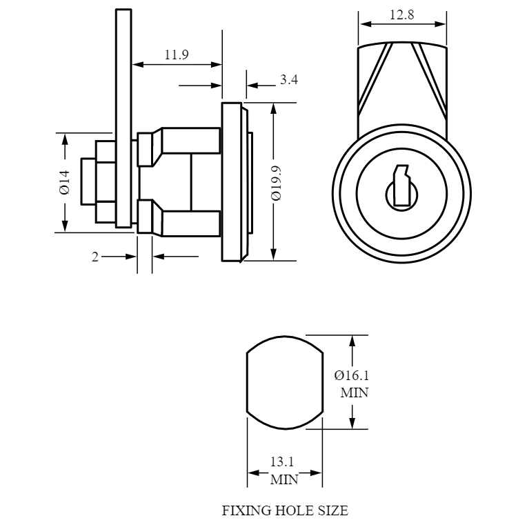 A 11.9mm Camlock C159 Nickel Plated with a Double D hole fixing shape. An ideal camlock for various applications including Medical Furniture and Automotive.