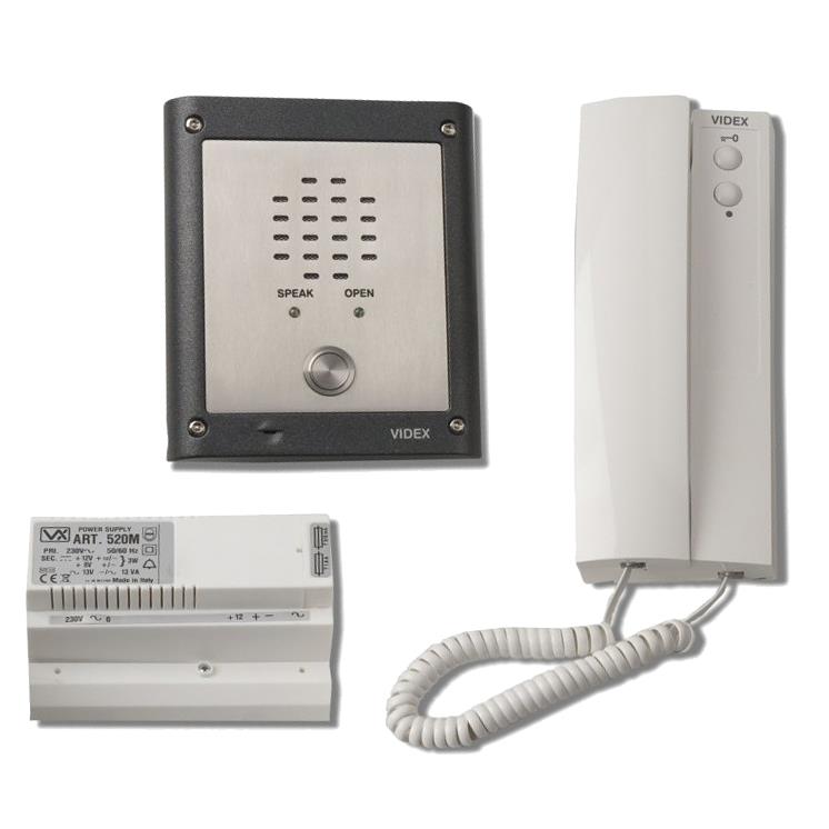 This Videx VR4K1S is a 1 button vandal resistant audio entry kit. It is part of the modular 4000 series and incorporates two way speech, electronic call tone and a lock release facility.