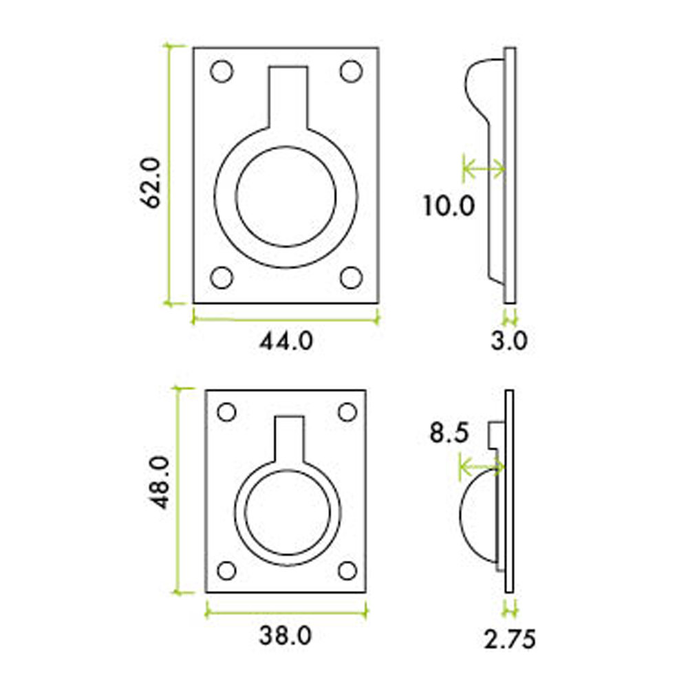ZOO ZAS43SS Flush Ring Pull - 48 X 38mm - Satin Stainless