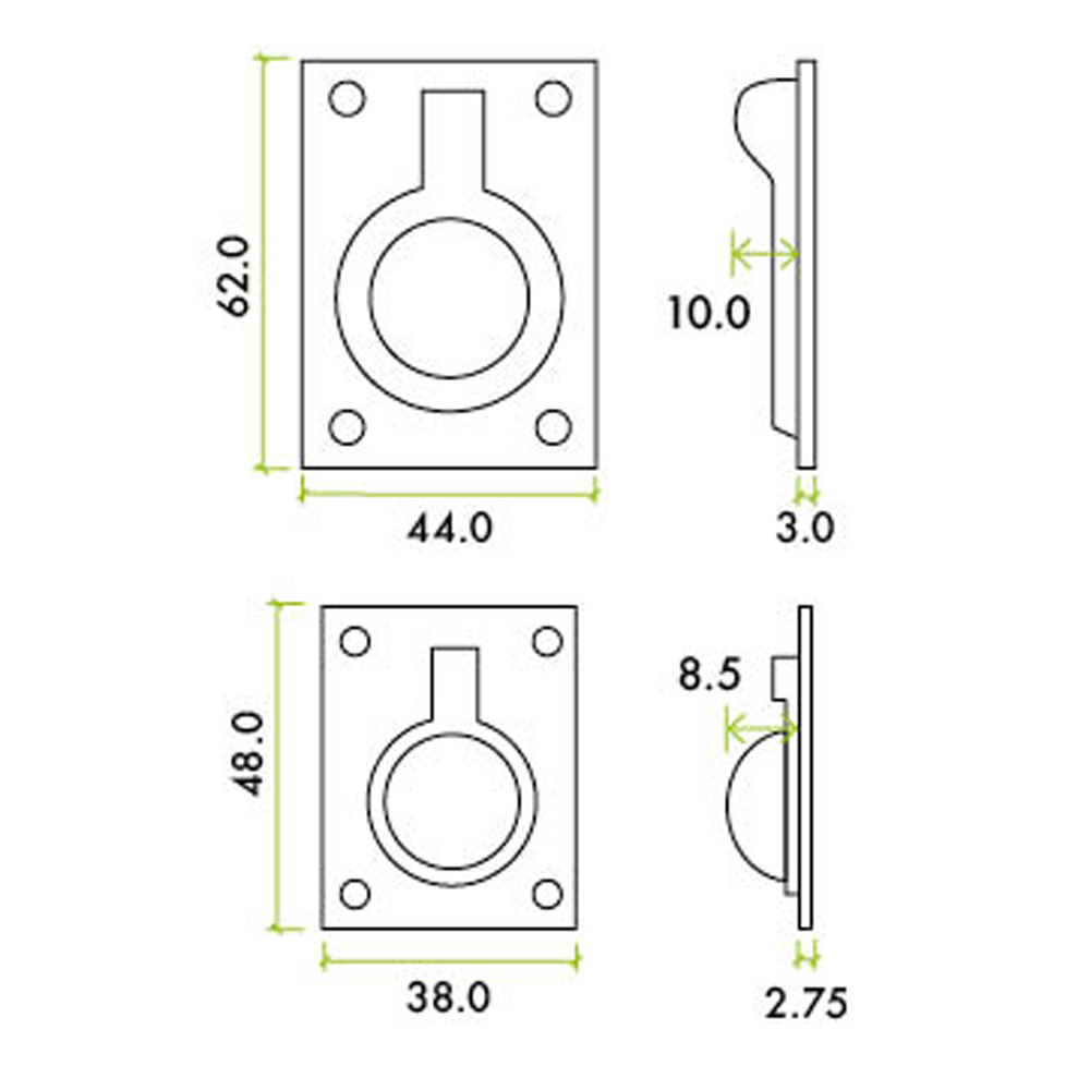 ZOO ZAS42SS Flush Ring Pull - 62 X 44mm - Satin Stainless