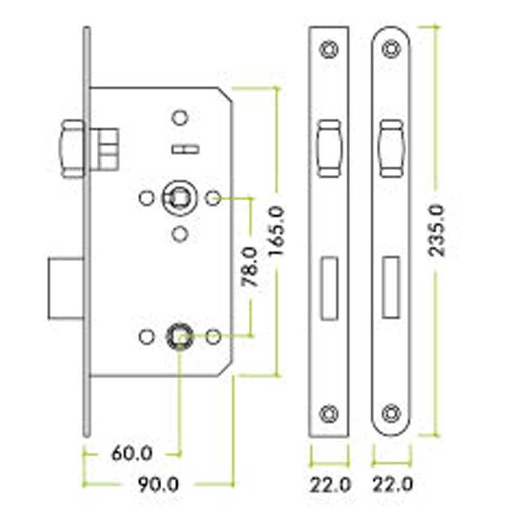 - Grade 304 stainless steel latchbolt & deadbolt