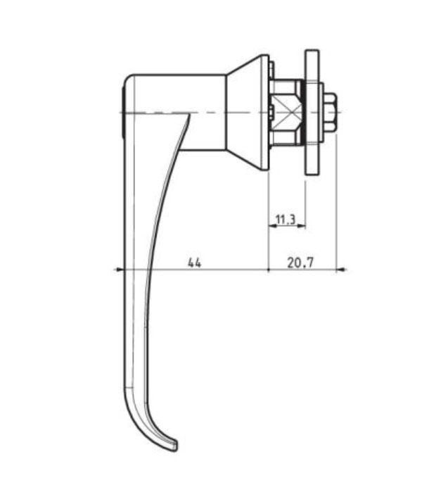 RONIS 1095 L-Shape handle - with 3 Point Cam - Suitable for COSHH Cabinets