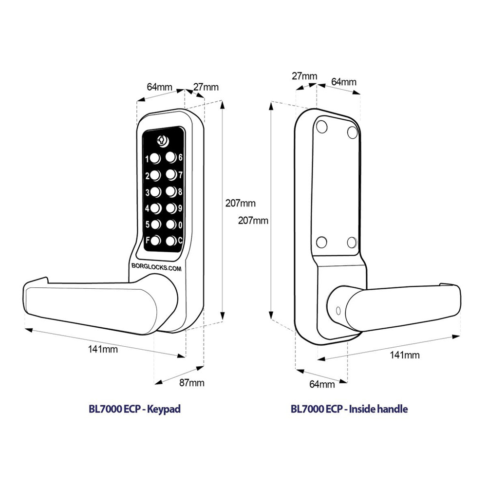 The BL7000 is our solution to the heavy duty specification, ideal for high traffic areas. Designed to provide a reliable solution for such a application, the BL7000 was designed to share a footprint with other popular heavy duty locks on the market, such at the Unican 1000 & 5000 to make switching over easy. Code changing was also made far easier with the easicode system, allowing a on the door code change and free passage function from the internal handle preventing any unauthorized code change attempts. This lock was manufactured with stainless steel coding to ensure it’s longevity and allowing it to operate externally. This variation on the BL7000 series does not come fitted with any latch and is designed to work with a pre-fitted set up or as a replacement keypad. The unit is a heavy duty lock and is suitable for use internally and externally on wooden, composite and steel doors.