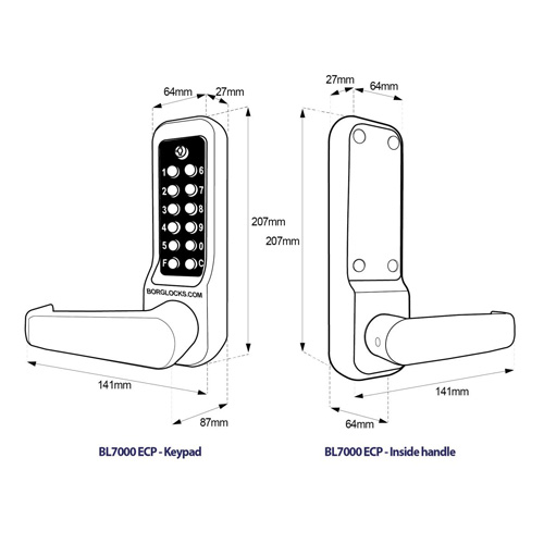 BORG BL7001 Keypad with lever - inside handle unit - 60mm latch - SS