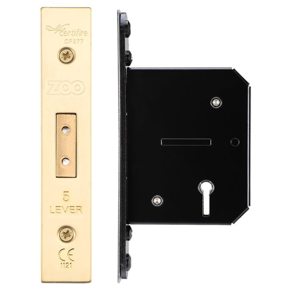 ZOO ZUKD564PVD 5 Lever Deadlock - 64mm C/W PVD Forend and Strike - Brass Finish / Anti Tarnish