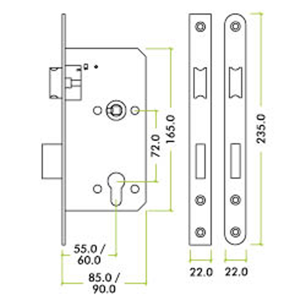 ZOO ZDL7260SS Din euro sashlock - 72mm c/c - backset 60mm
