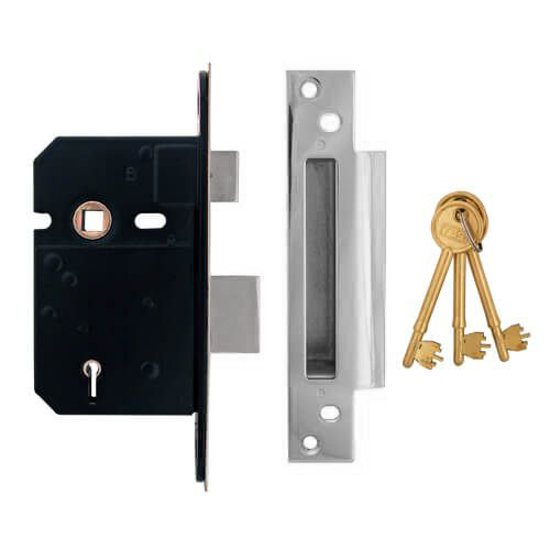 TSSBSMSL3C British Standard 5 Lever Mortice Sashlock (3"), 57mm backset, Chrome Finish