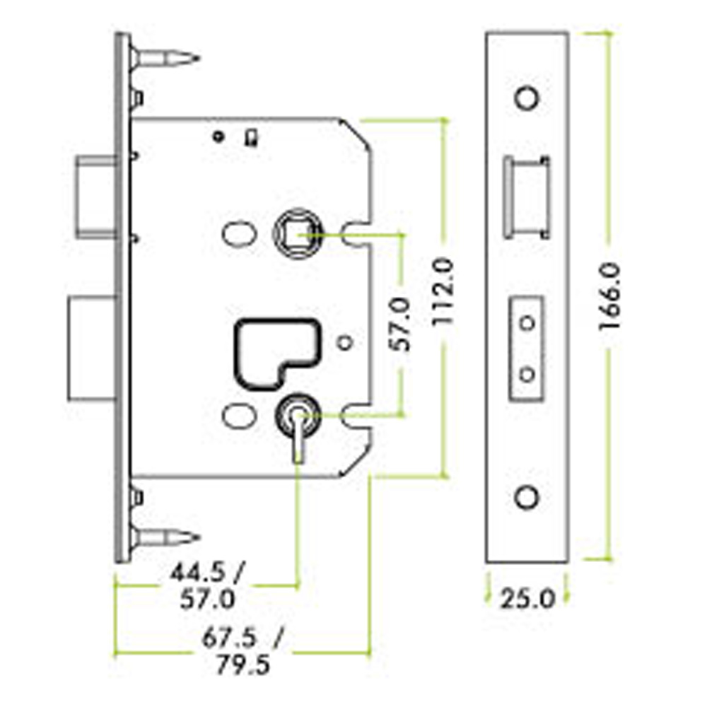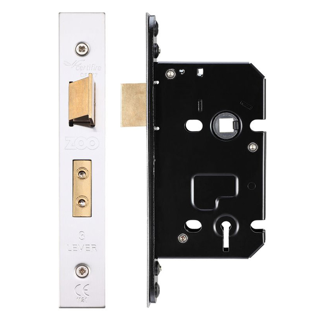 ZOO ZUKS364SS 3 Lever Sash Lock - 64mm C/W PVD Forend and Strike - SS