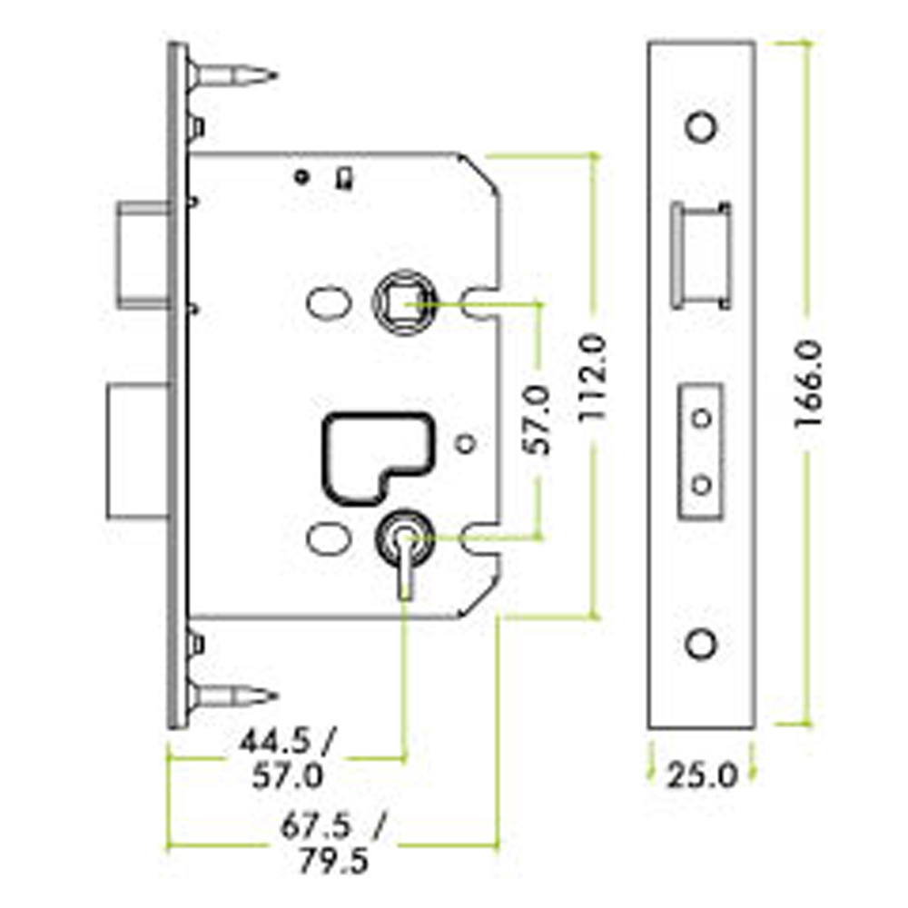 ZOO ZUKS364PVD 3 Lever Sash Lock - 64mm C/W PVD Forend and Strike