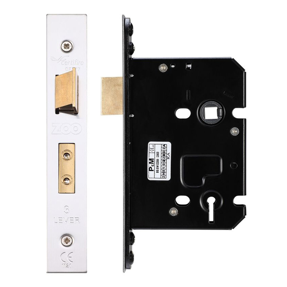 ZOO ZUKS376SS 3 Lever Sash Lock - 76mm C/W PVD Forend and Strike - Satin Stainless