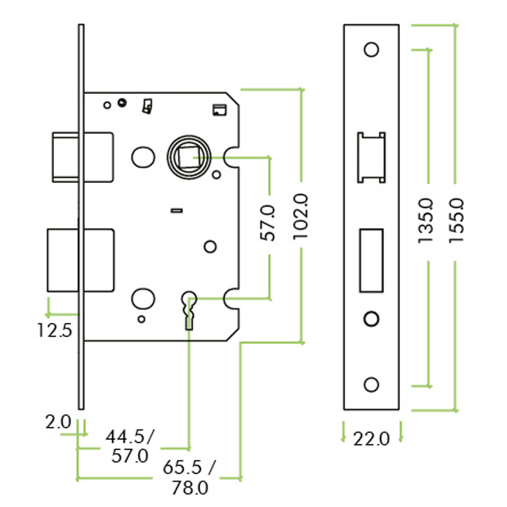 ZOO ZSC364PVD 3 Lever Sash Lock 2.5" - Smaller Case - Brass Finish / Anti Tarnish