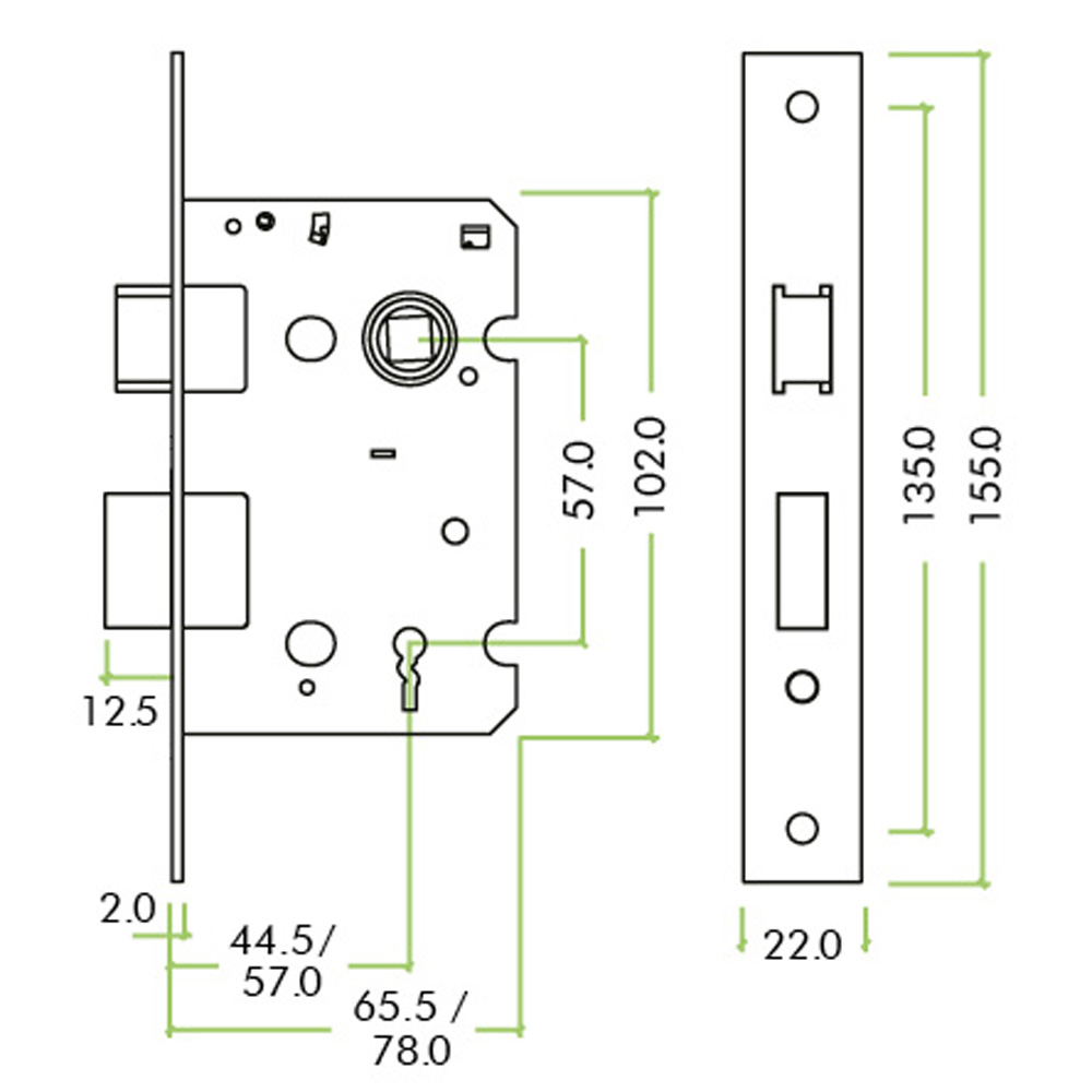 ZOO ZSC364FB 3 Lever Sash Lock 2.5" - Smaller Case - Florentine Bronze
