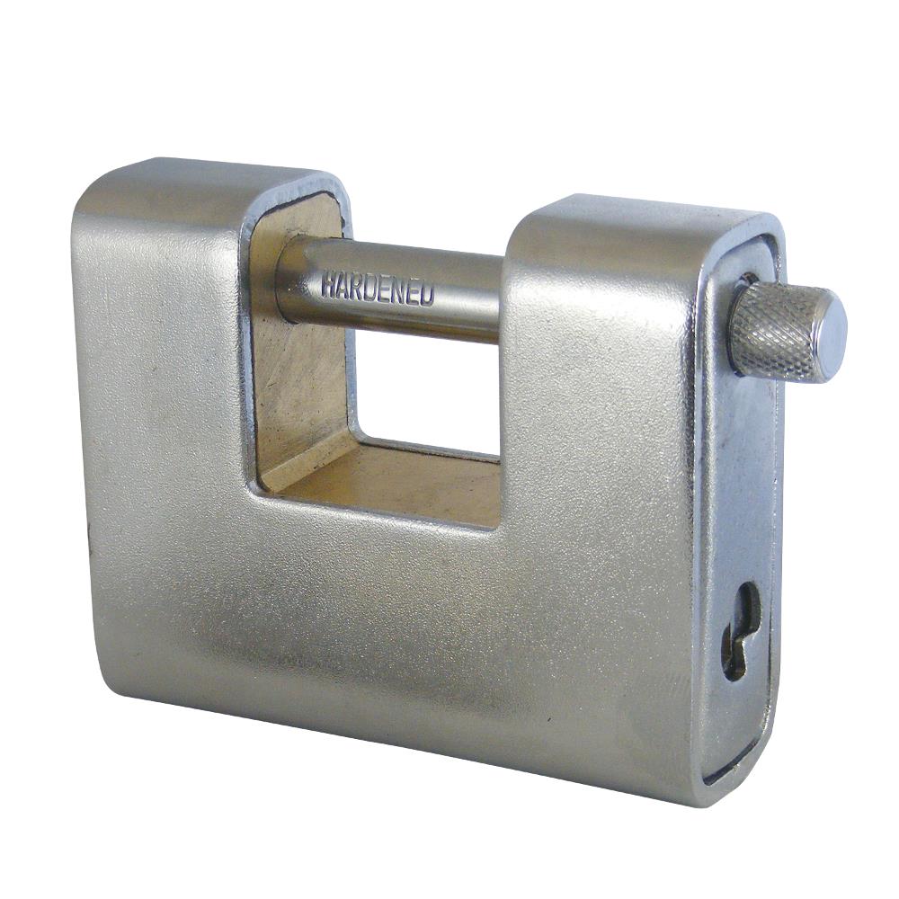 The Asec sliding shackle padlock is designed to be robust and have a high resistance to attack. It is ideal for shutter or link chain applications where security is an issue.