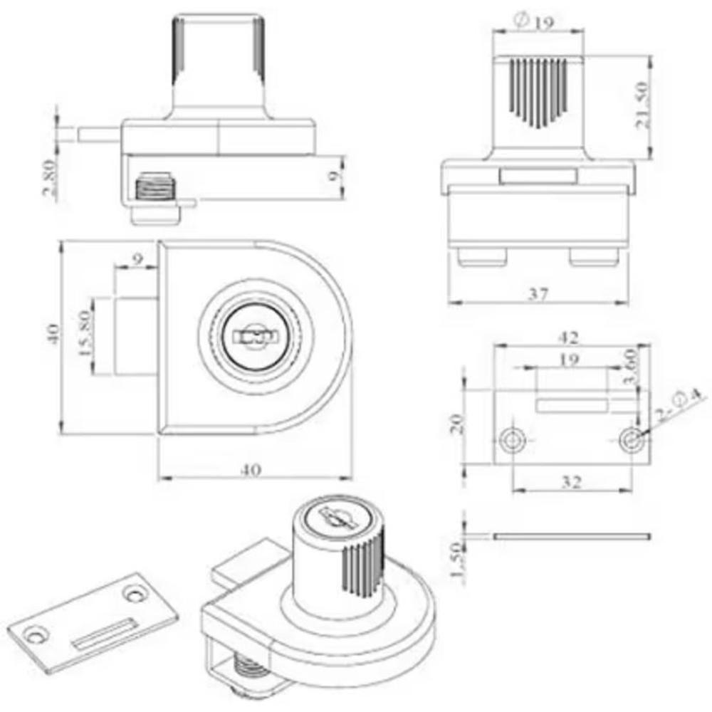 • Finish: Chrome,• Supplied with 2 keys and a keep,• Available keyed to differ or keyed alike,• Size: 32mm High x 32mm Width with 19mm Nozzle